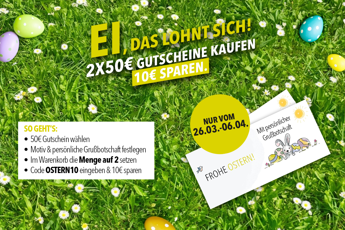 Mache jemandem eine besondere Freude und verschenke unseren Digitalen Gutschein. Der Gutschein wird per E-Mail versendet und bietet Platz für eine persönliche Widmung.